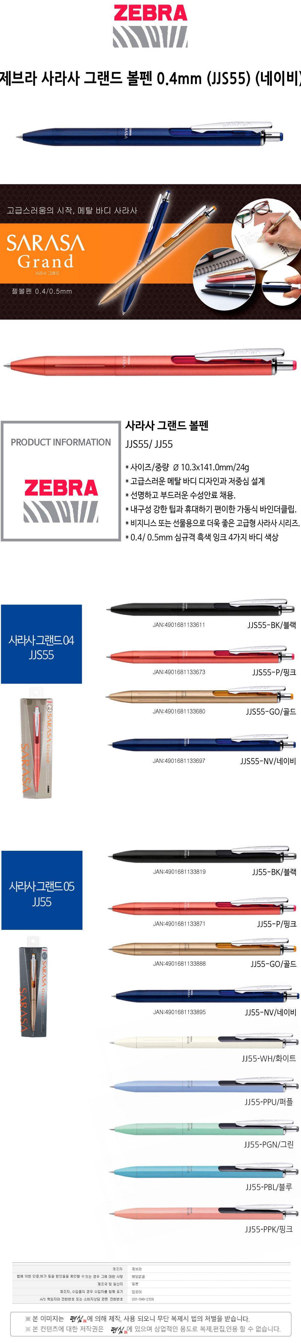 제브라 사라사 그랜드 볼펜 0.4mm JJS55 네이비