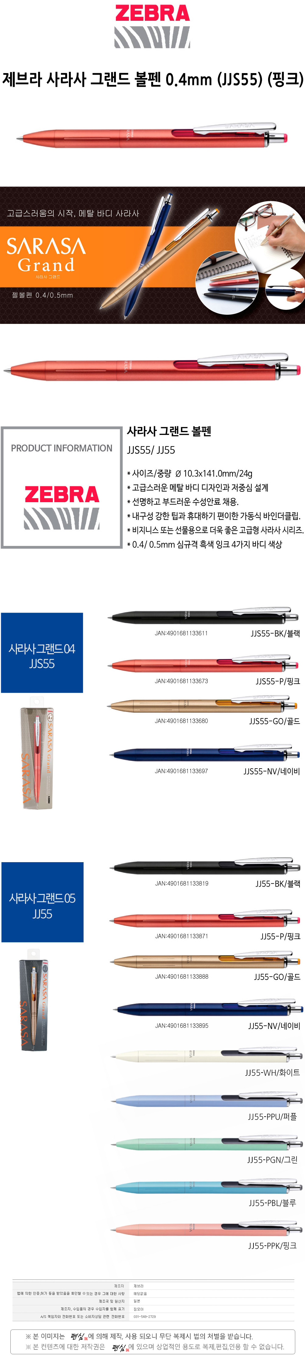 제브라 사라사 그랜드 볼펜 0.4mm JJS55 핑크
