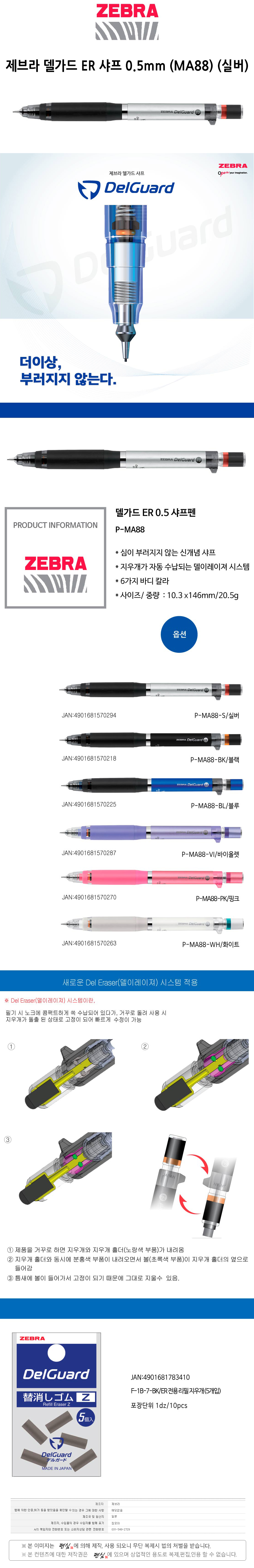 제브라 델가드 ER 샤프 0.5mm MA88 실버