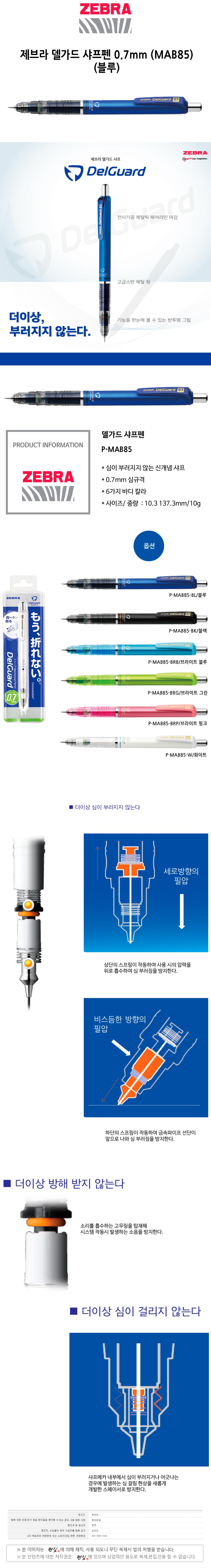 제브라 델가드 샤프펜 0.7mm MAB85 블루