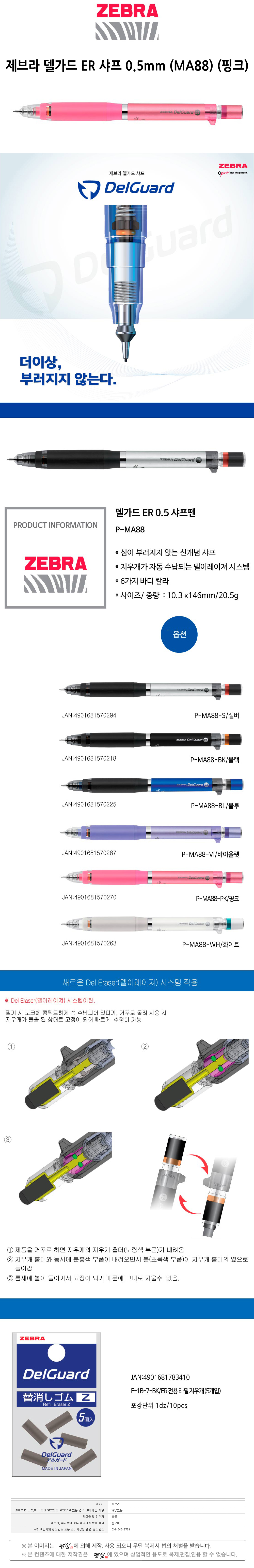 제브라 델가드 ER 샤프 0.5mm MA88 핑크