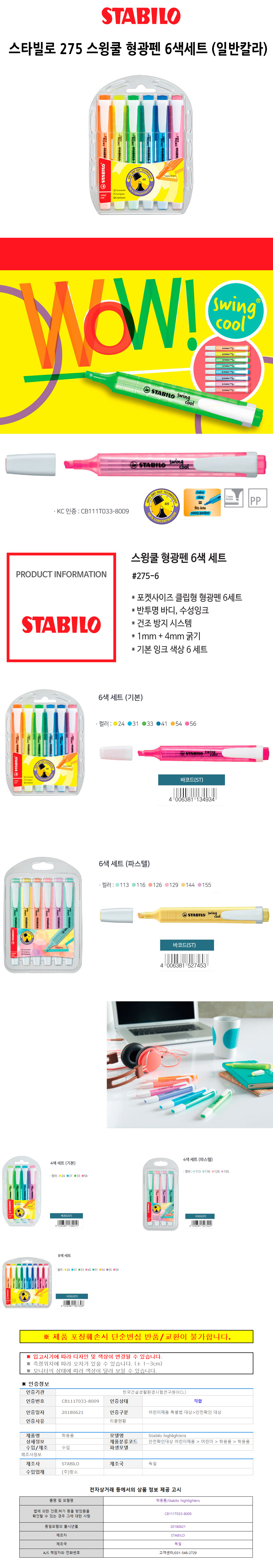 스타빌로 275 스윙쿨 형광펜 6색세트 일반칼라