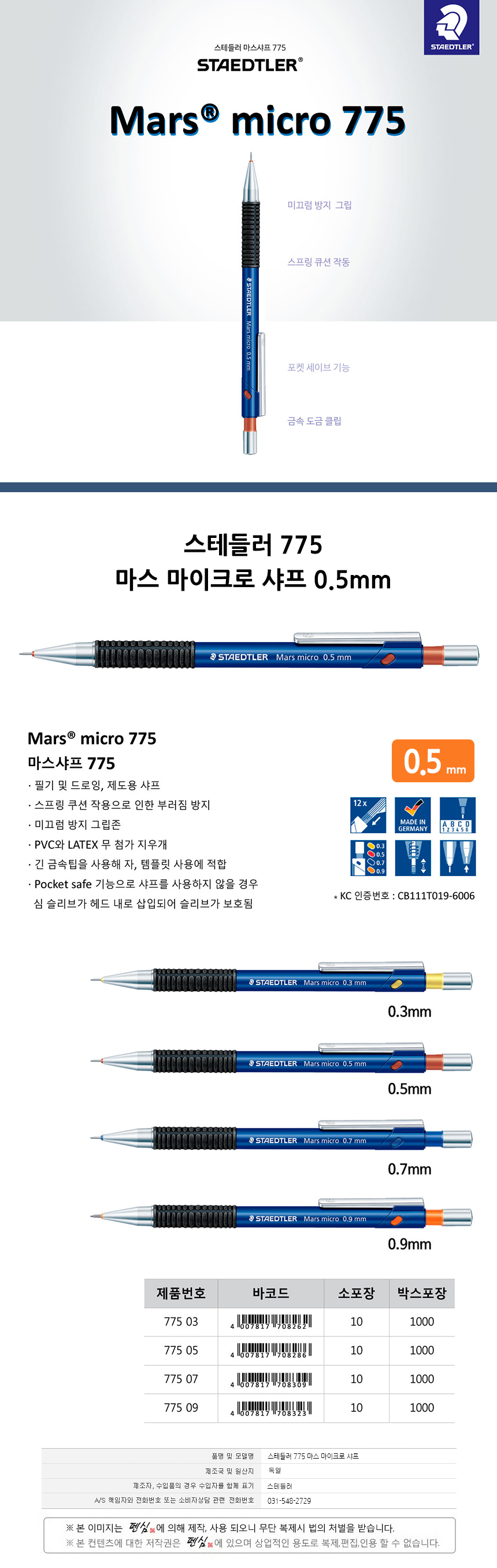 스테들러 775 마스 마이크로 샤프 0.5mm