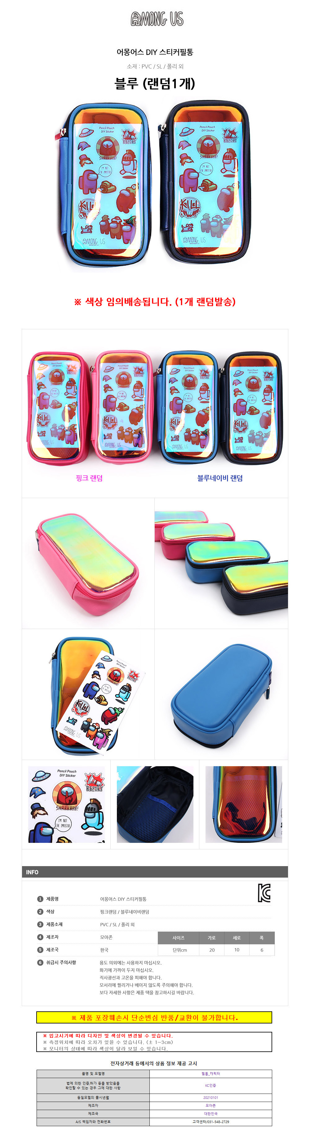 모아존 어몽어스 DIY스티커 필통 블루 랜덤1개