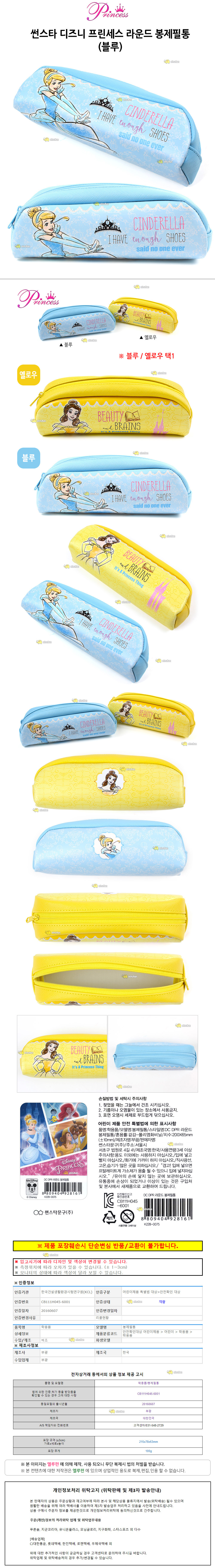 썬스타 디즈니 프린세스 라운드 봉제 필통 블루