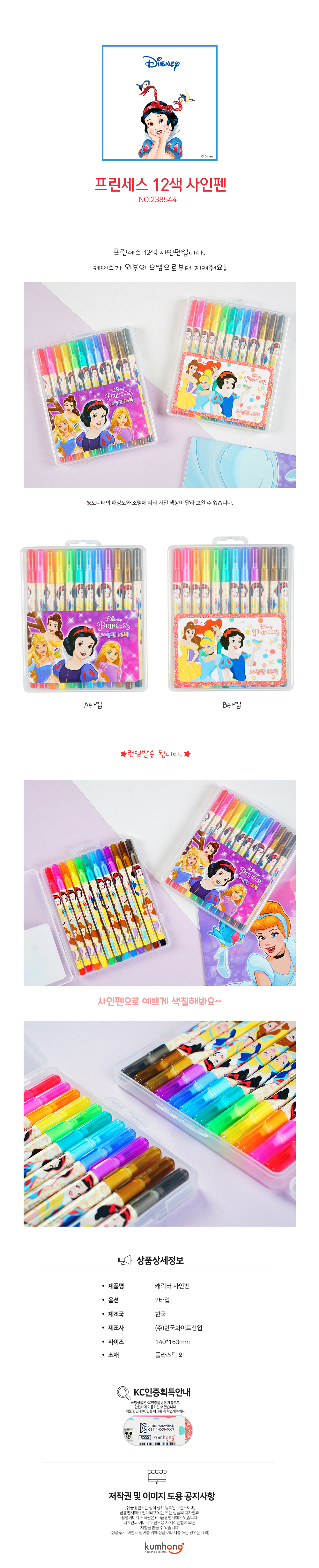 5000 디즈니프린세스 사인펜12색(랜덤발송)/238544