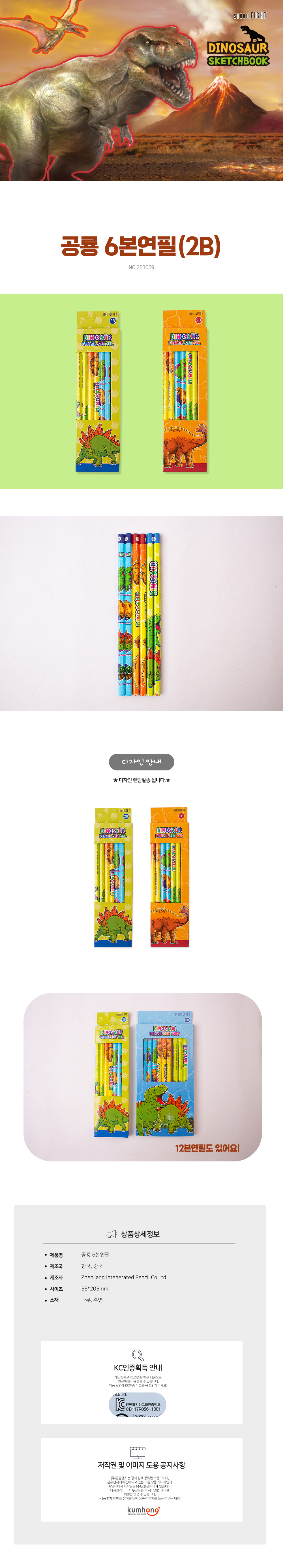 다이노소어 공룡 6본 연필 2B 필기구 253059