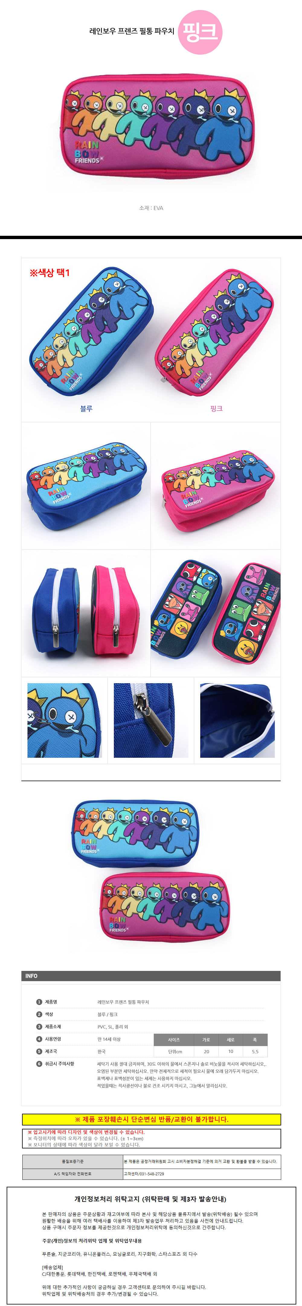 나라 레인보우 프렌즈 필통 파우치 (핑크)