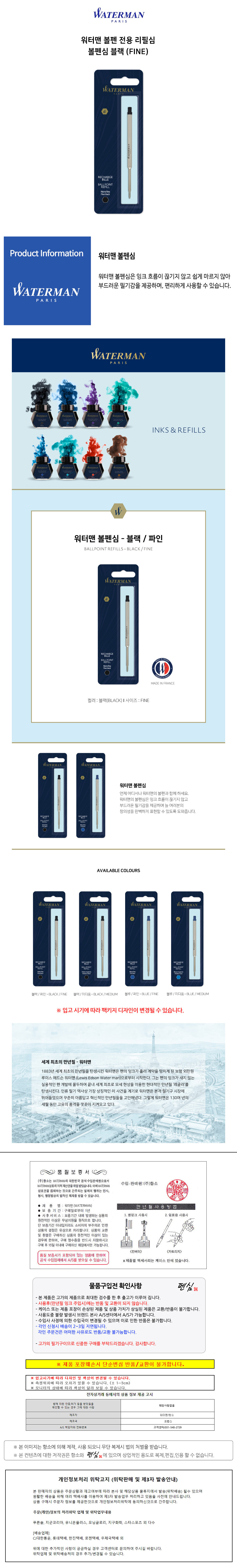 워터맨 볼펜 전용 리필심 볼펜심 블랙 (FINE)