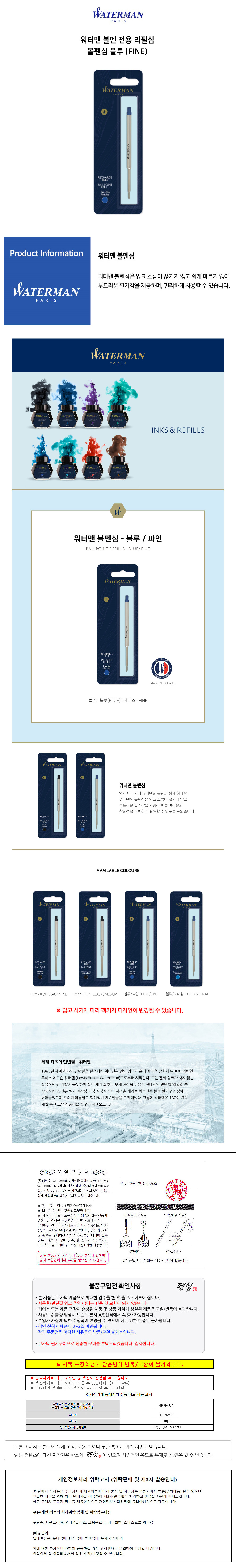 워터맨 볼펜 전용 리필심 볼펜심 블루 (FINE)