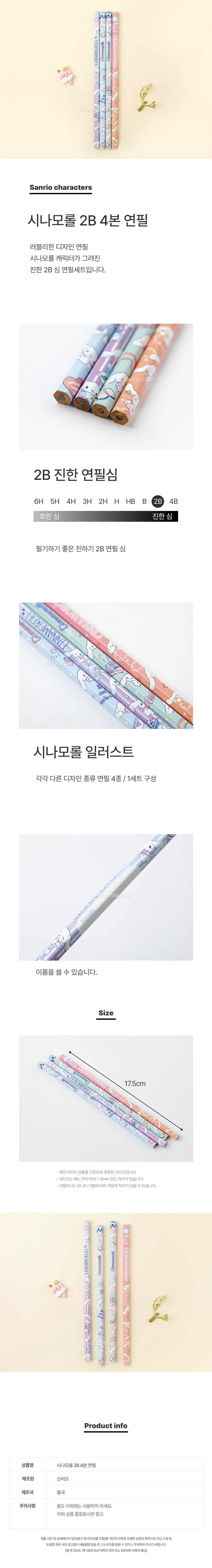 품명 및 모델명 시나모롤 2B 4본 연필-4EA