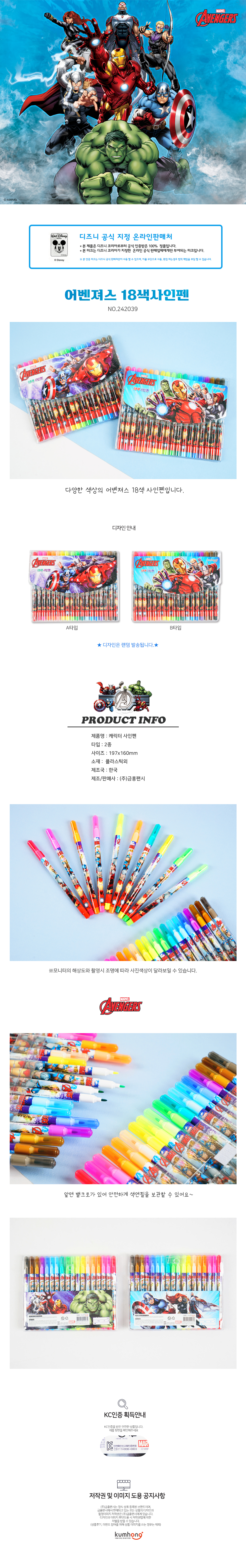 마블 어벤져스 18색 사인펜 242039 초등준비물