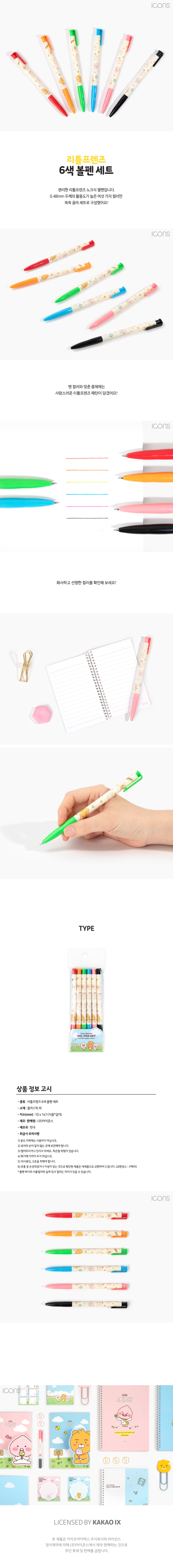 | 품명 및 모델명 | 카카오프렌즈 6색 볼펜 세트 라이언 어피치 |