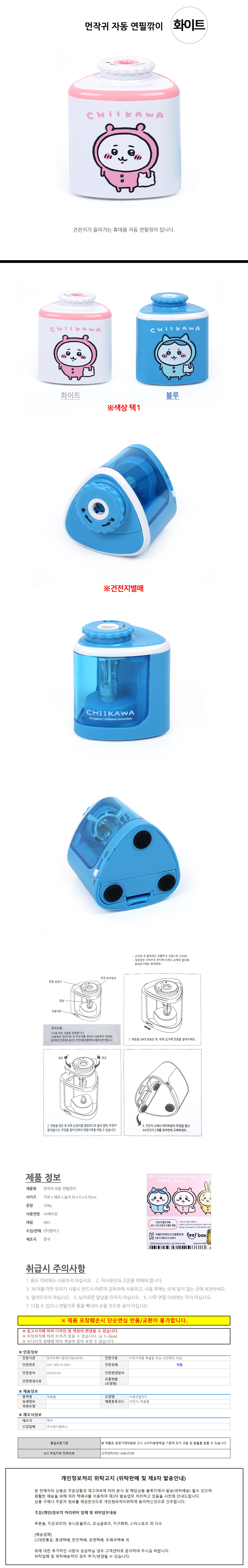 필박스 먼작귀 자동 연필깎이 (화이트)