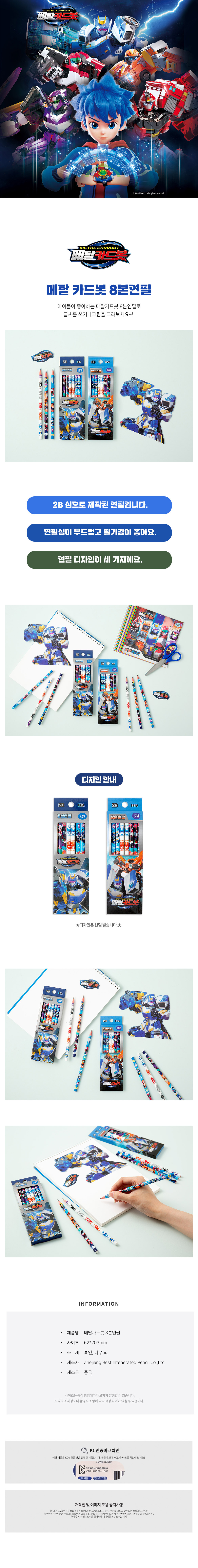 | 품명 및 모델명 | 메탈카드봇 캐릭터 8본 연필 2B 필기 도구 |