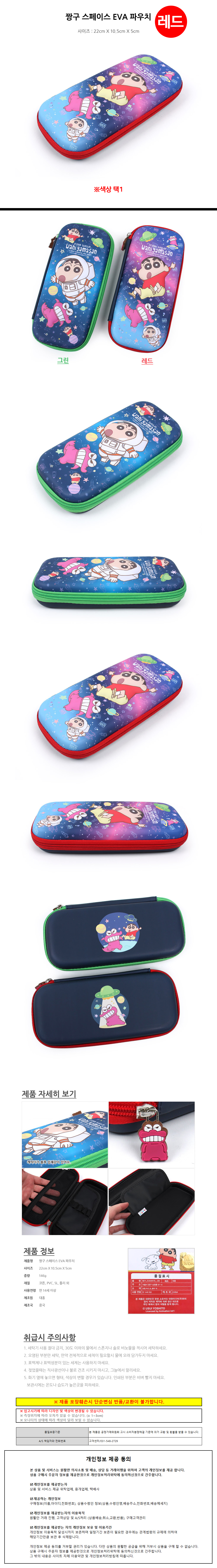 대흥 필통 짱구 스페이스 EVA 파우치 (레드)