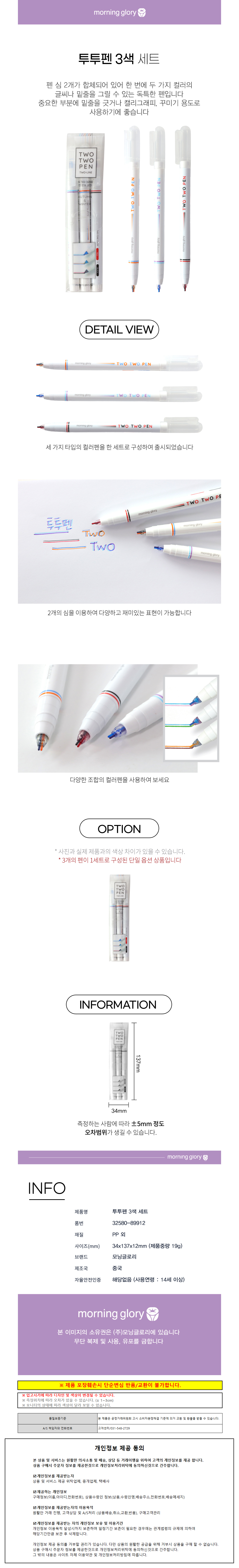 모닝글로리 예쁜 그림자글씨 투투펜 3색 세트