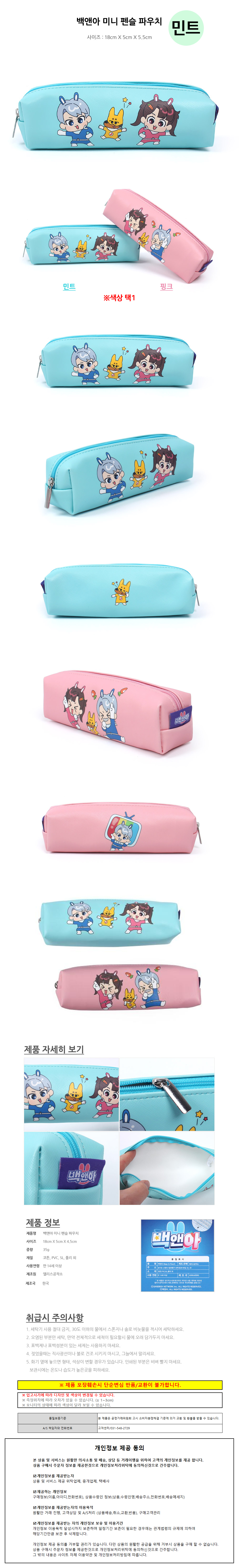 앨리스공작소 필통 백앤아 미니 펜슬 파우치 (민트) 캐릭터필통