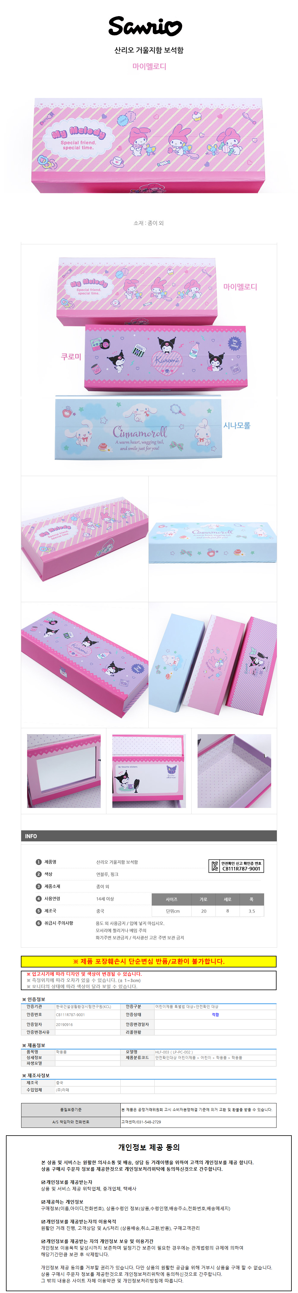 나라 필통 산리오 거울 지함 보석함 (마이멜로디) 캐릭터필통