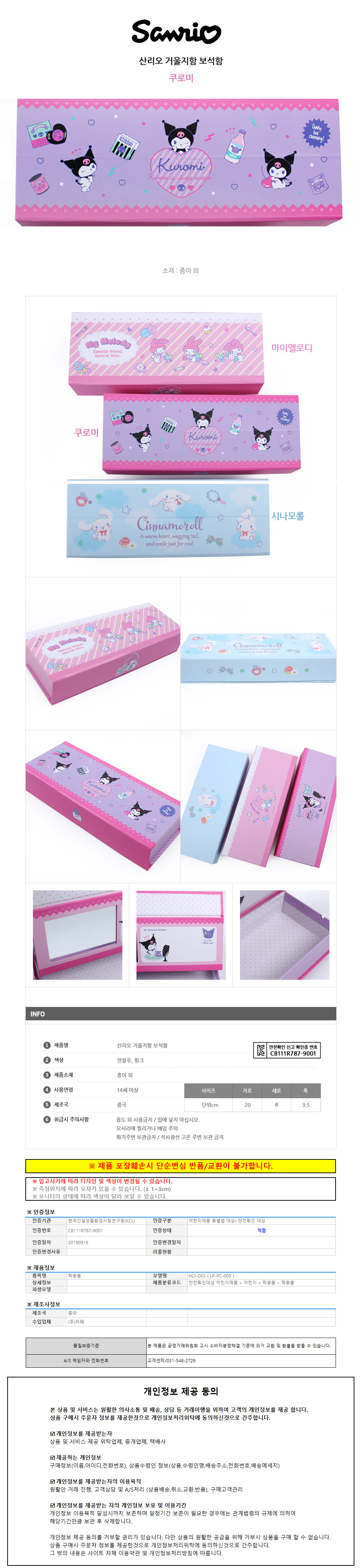 나라 필통 산리오 거울 지함 보석함 (쿠로미) 캐릭터필통