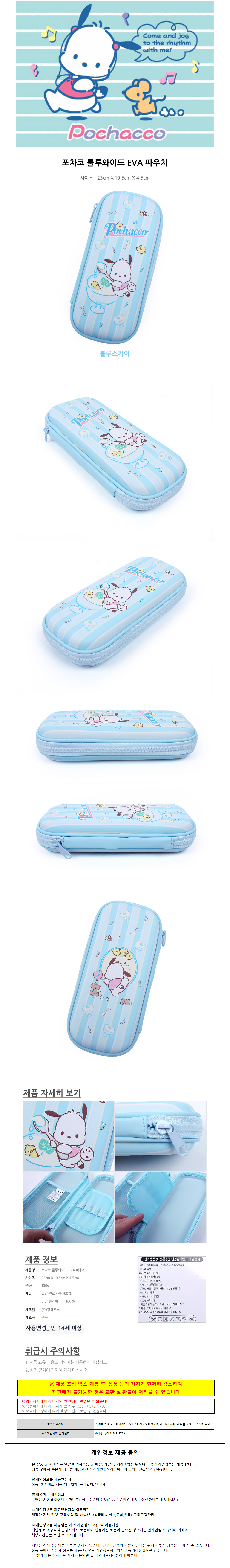 윙하우스 필통 포차코 캐릭터 룰루 와이드 EVA 파우치 펜슬케이스