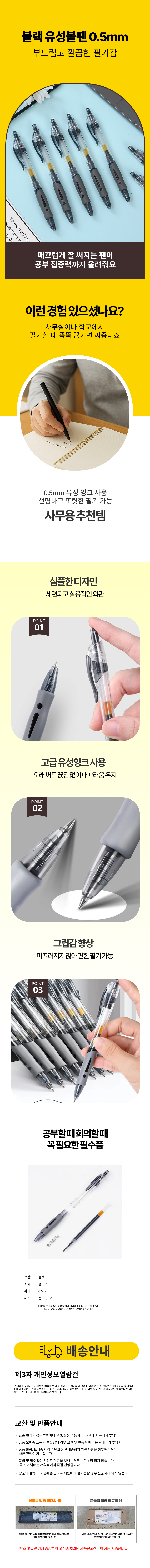 0.5mm 검정 유성볼펜 학생 필기구 판촉물 리필가능