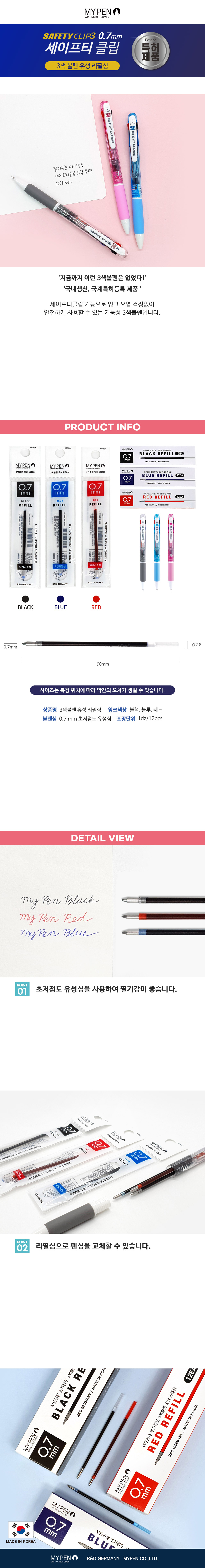 | 품명 및 모델명 | 마이펜 세이프티클립 3색 볼펜 리필심 파랑 0.7mm |