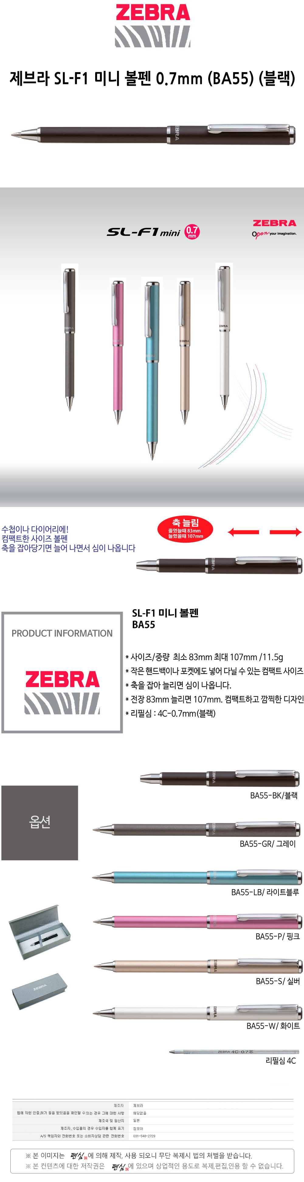 제브라 SL-F1 미니 볼펜 0.7mm BA55 블랙