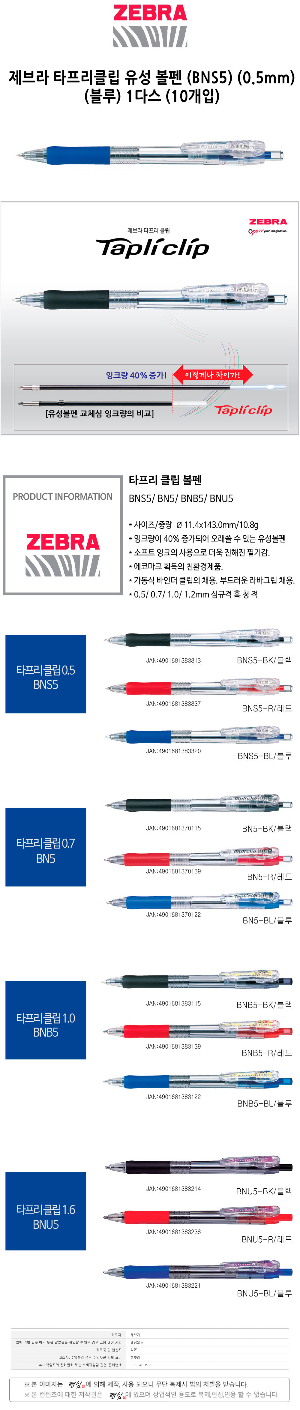 제브라 타프리클립 유성 볼펜 BNS5 0.5mm 블루 1다스 10개입