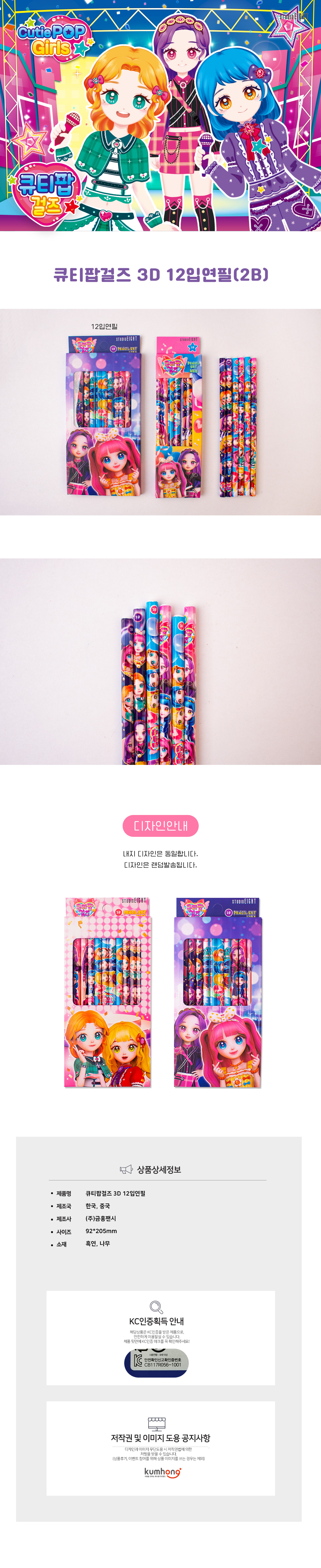 스튜디오8 큐티팝걸즈 12입연필 252304