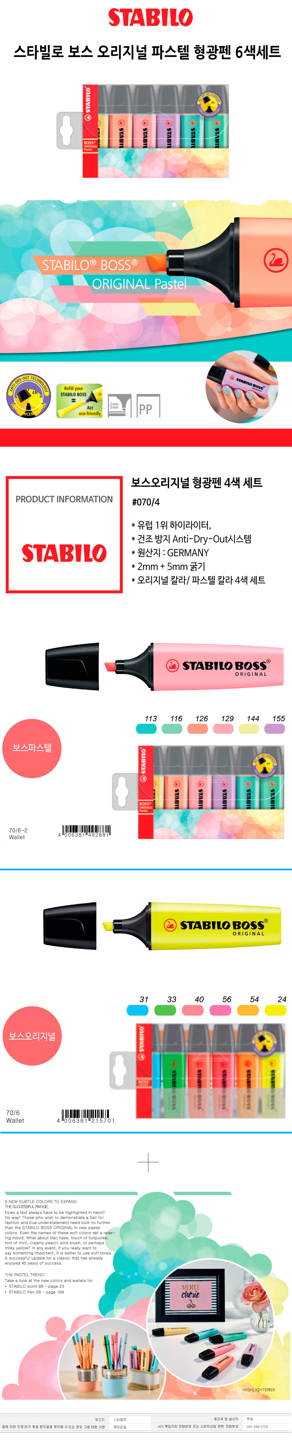 스타빌로 보스 오리지널 파스텔 형광펜 6색세트