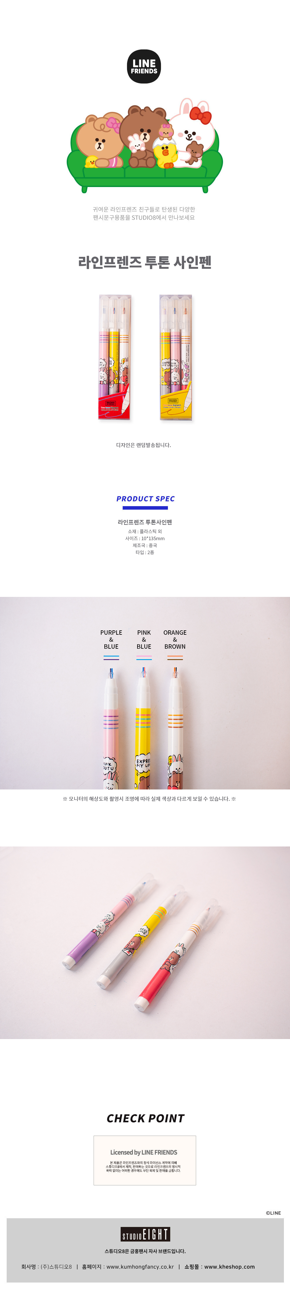 라인프렌즈 투톤 사인펜 형광 볼펜