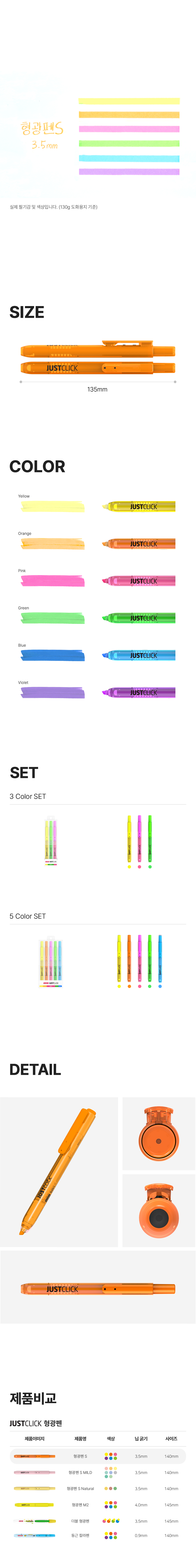 품명 및 모델명 모리스 저스트클릭 노크식 형광펜 S MRH-105