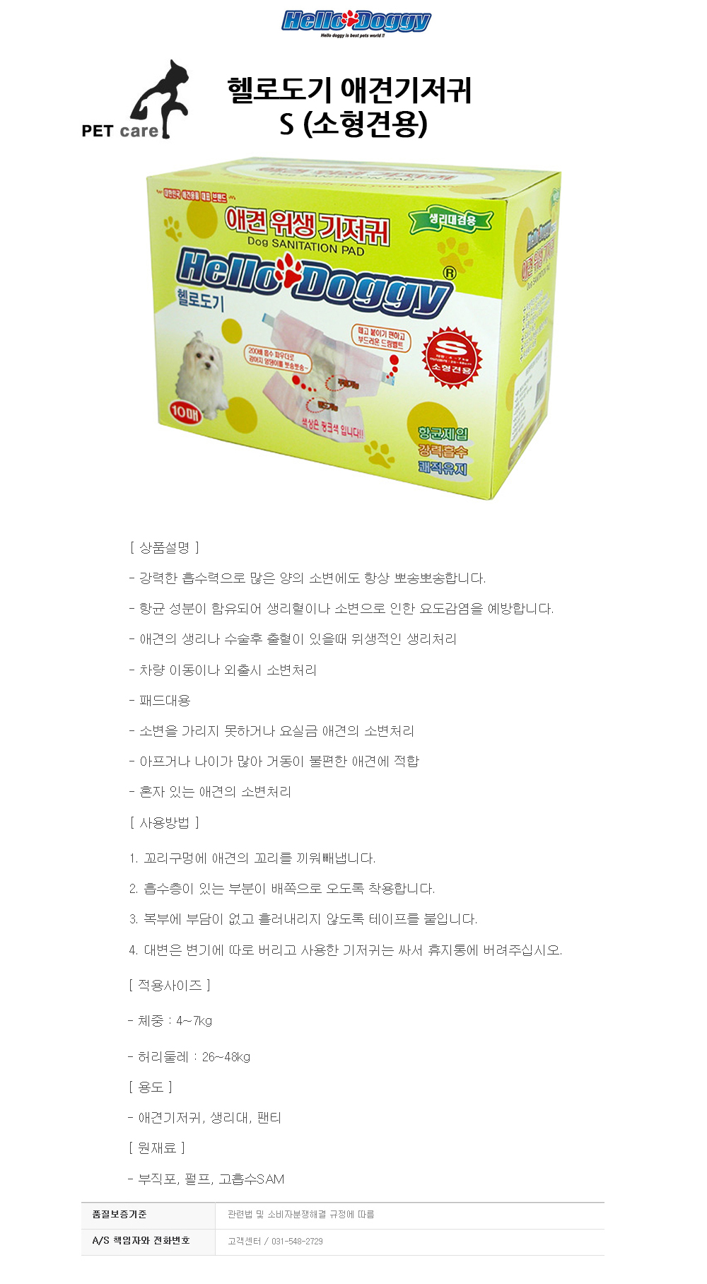 헬로도기 애견기저귀 S 소형견용