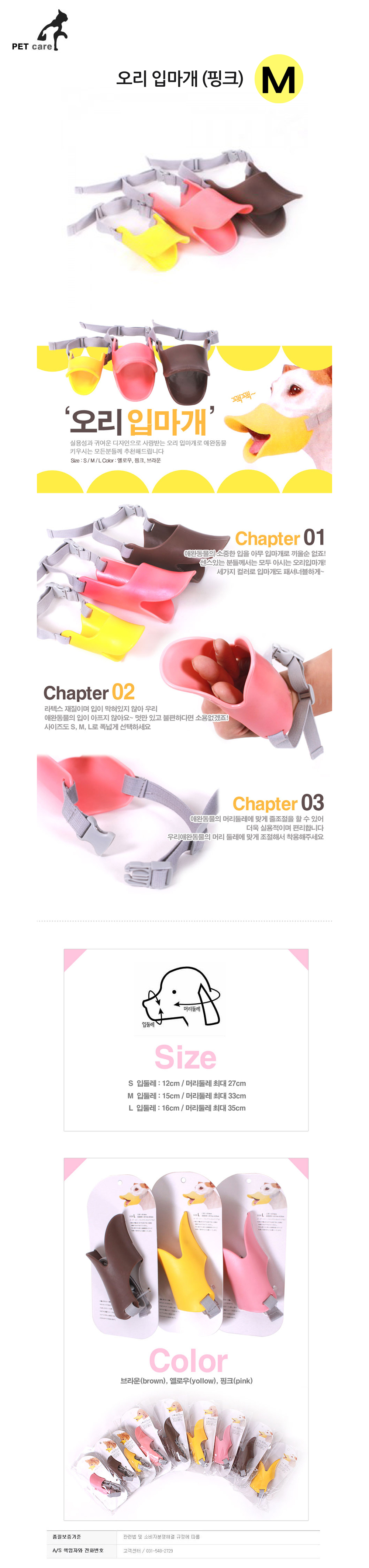 엠펫 오리 애완견 입마개 핑크 M