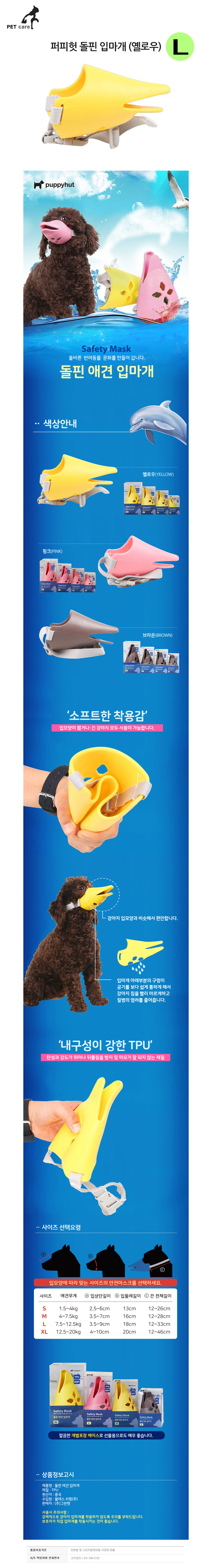 퍼피헛 돌핀 애완견 입마개 옐로우 L