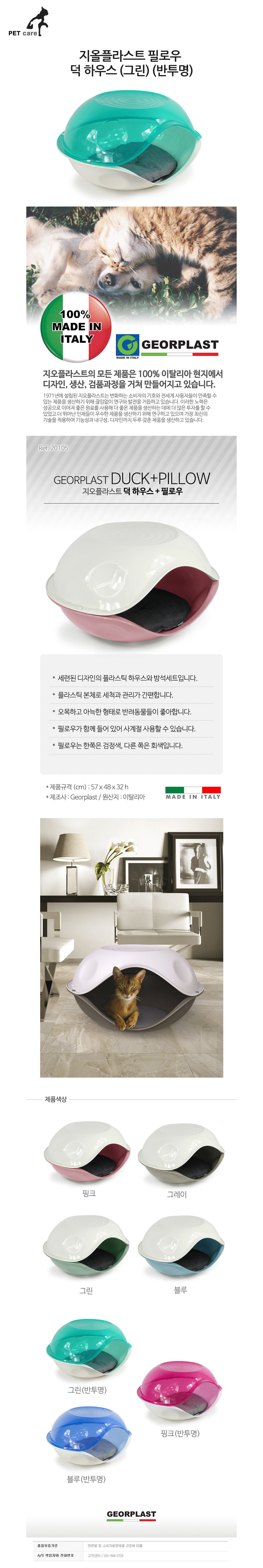 지올플라스트 덕 필로우 켓 하우스 그린 반투명