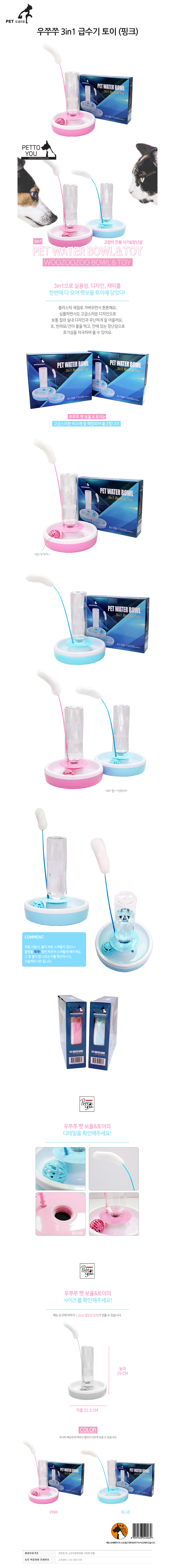 우쭈쭈 3in1 고양이 급수기 토이 고양이장난감 핑크