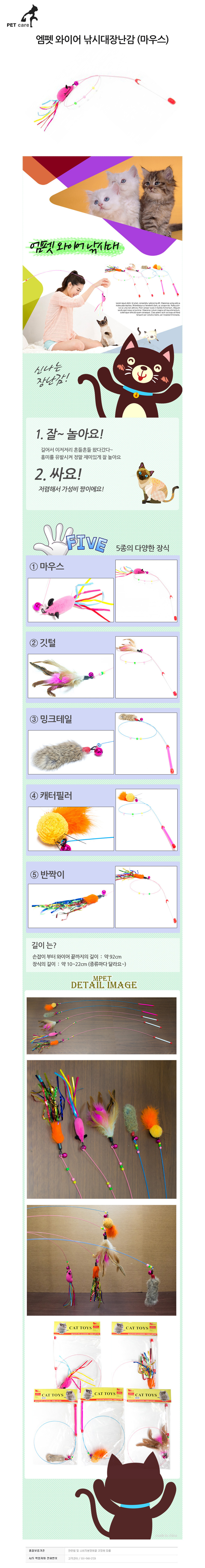 엠펫 와이어 낚시대 고양이장난감 고양이 장난감 마우스