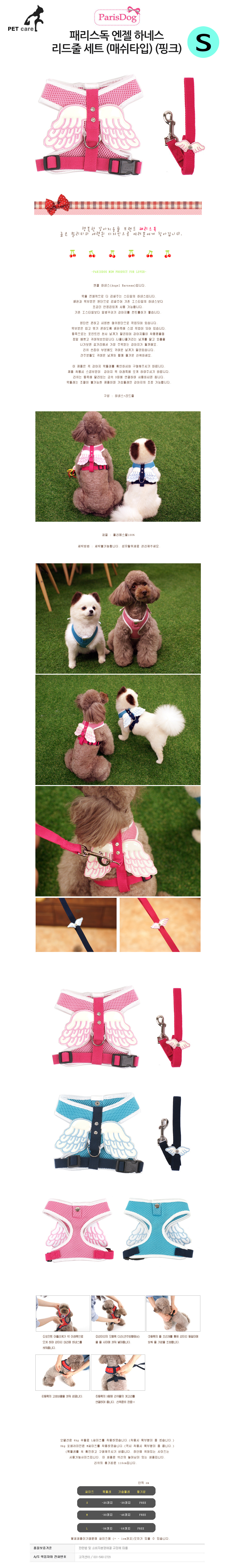 패리스독 엔젤 하네스 리드줄 세트 매쉬타입 핑크 S
