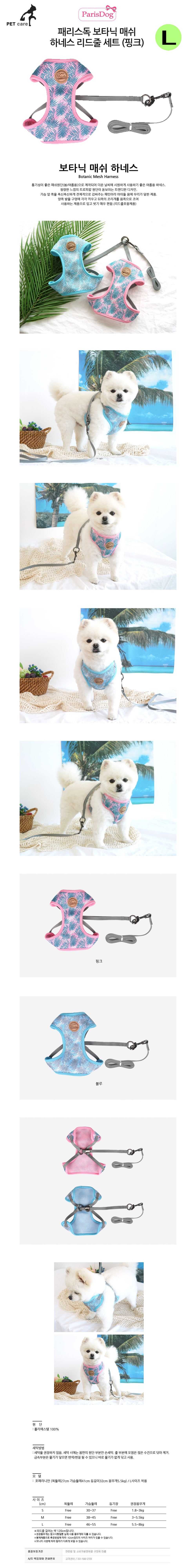 패리스독 보타닉 매쉬 하네스 리드줄 세트 핑크 L