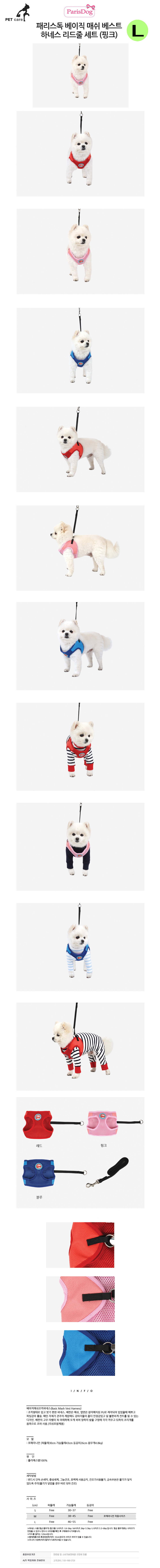 패리스독 베이직 매쉬 베스트 하네스 리드줄 세트 핑크 L
