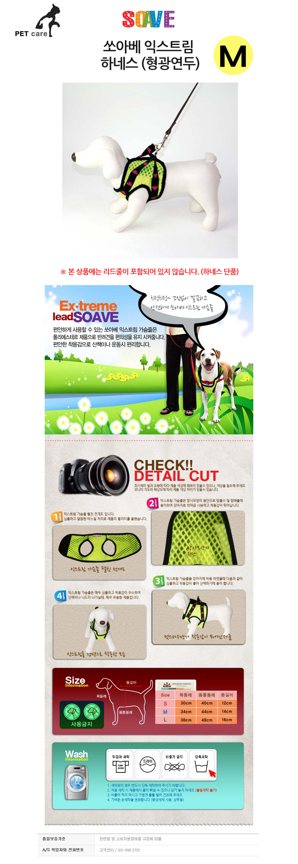 쏘아베 익스트림 하네스 형광연두 M 리드줄 미포함