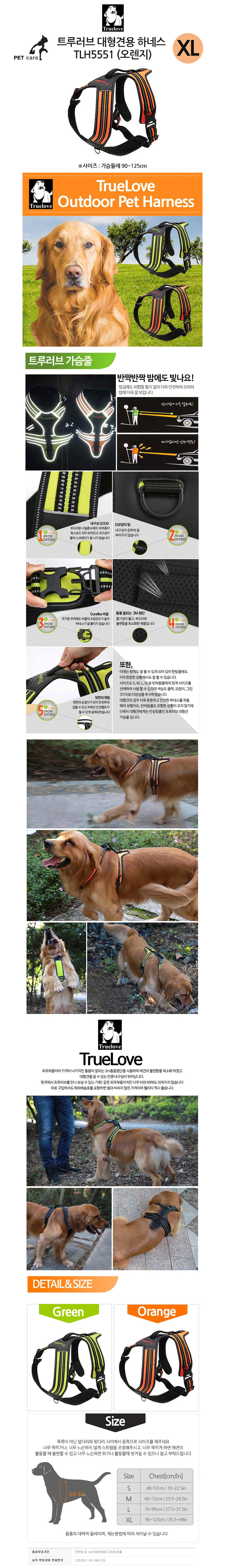 트루러브 대형견용 하네스 TLH5551 가슴둘레 90-125cm 오렌지 XL