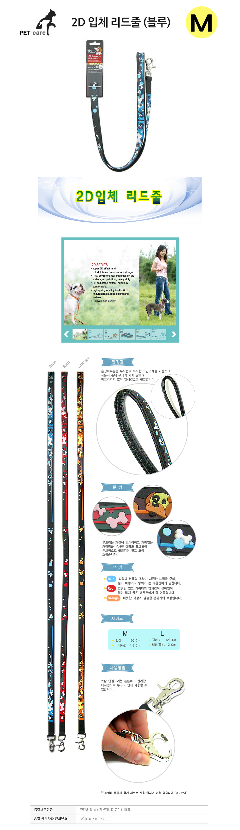 엠펫 2D 입체 리드줄 블루 M