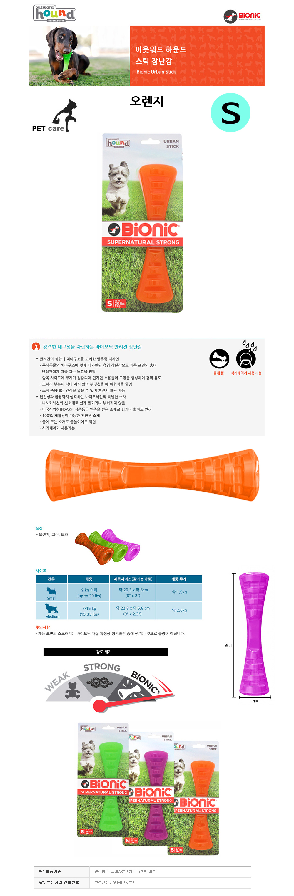 아웃워드 하운드 스틱 장난감 오렌지 S