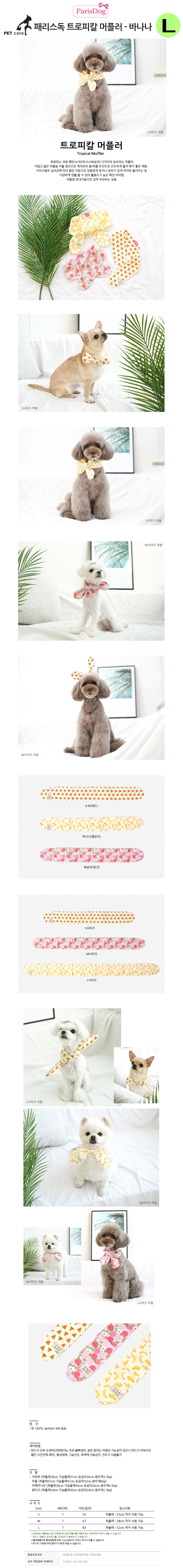 패리스독 트로피칼 애견 머플러바나나 옐로우 L