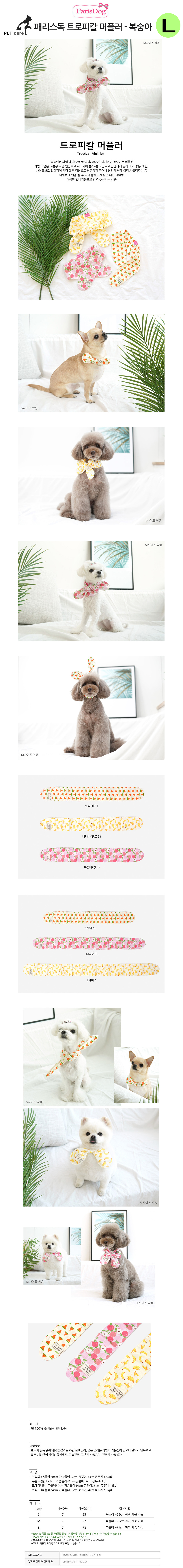 패리스독 트로피칼 애견 머플러 복숭아 핑크 L