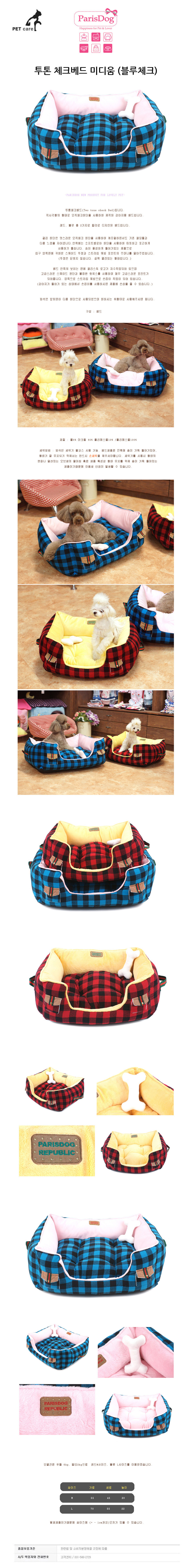 패리스독 투톤 체크베드 미디움 블루체크