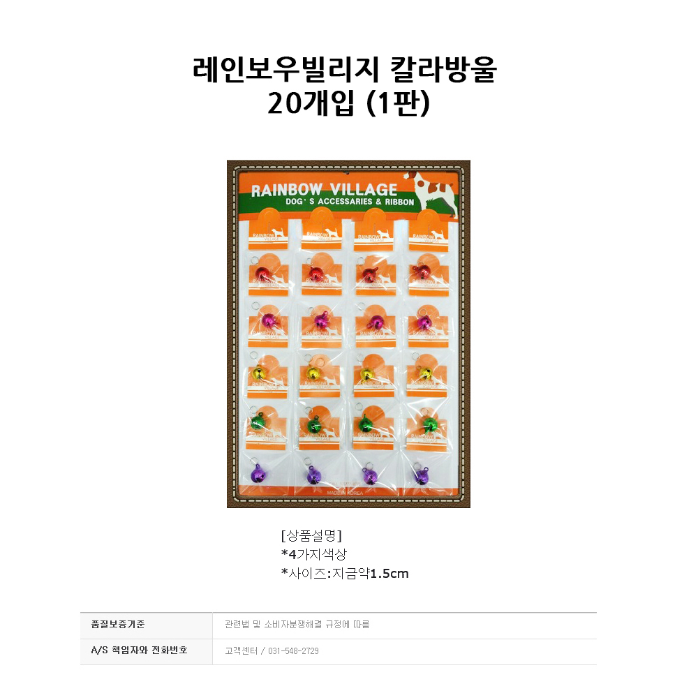 레인보우빌리지 칼라 강아지 방울 20개입 1판